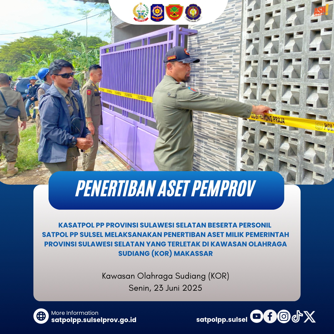 SATPOL PP SULSEL MELAKSANAKAN TUGAS PENGAMANAN DAN PENERTIBAN ASET YANG ADA DI GOR SUDIANG