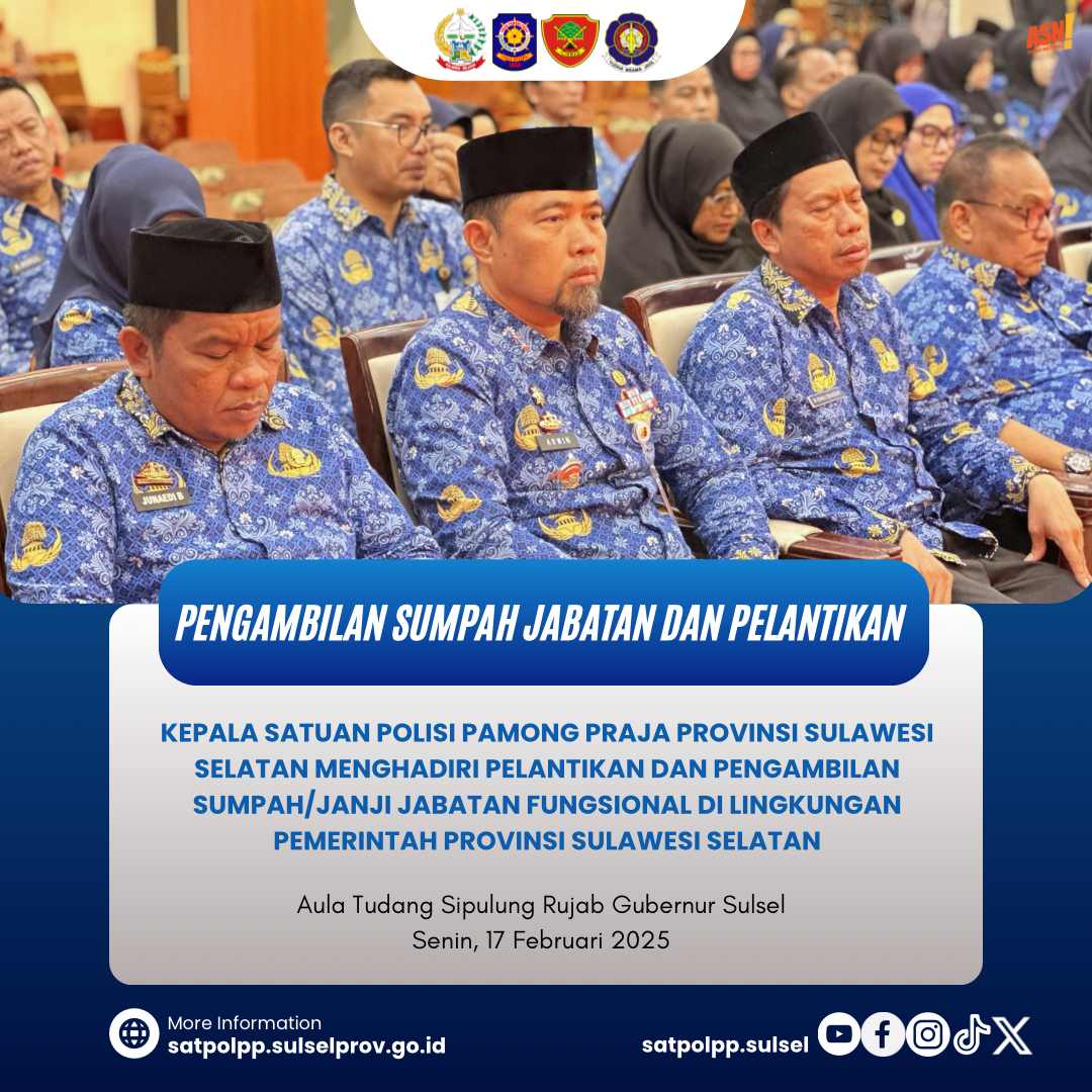 Kepala Satuan Polisi Pamong Praja Provinsi Sulawesi Selatan Menghadiri Pelantikan dan Pengambilan Sumpah/Janji Jabatan Fungsional di Lingkungan Pemerintah Pr...