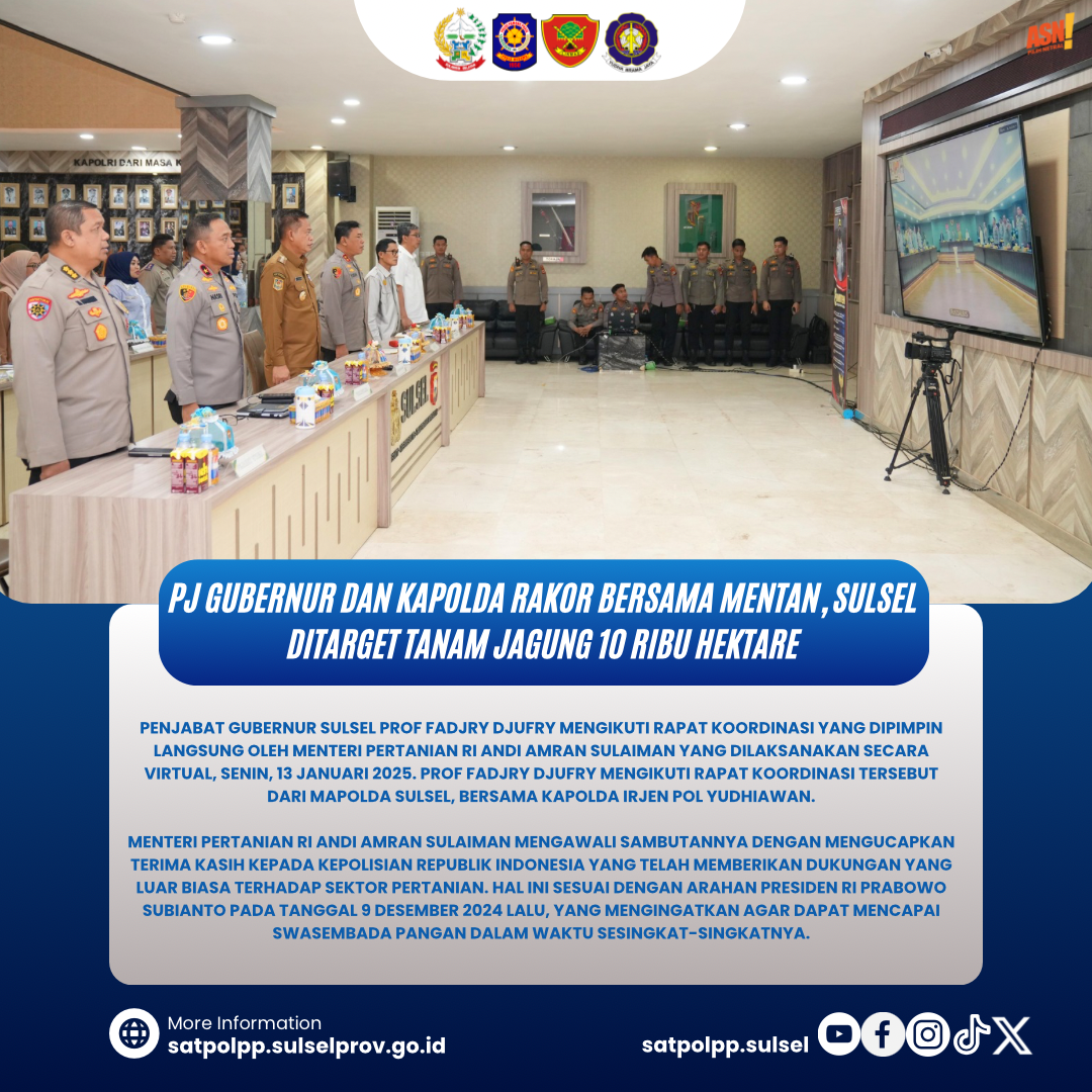 MAKASSAR - Penjabat Gubernur Sulsel Prof Fadjry Djufry mengikuti Rapat Koordinasi yang dipimpin langsung oleh Menteri Pertanian RI Andi Amran Sulaiman yang d...