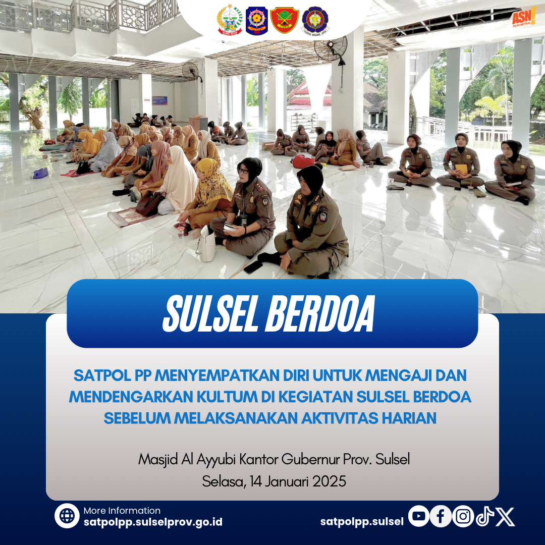 Personil Satuan Polisi Pamong Praja Provinsi Sulawesi Selatan melaksanakan Pengawasan Trantibum Setiap hari diarea Gedung, Kantor, Rumah Jabatan, dan K...