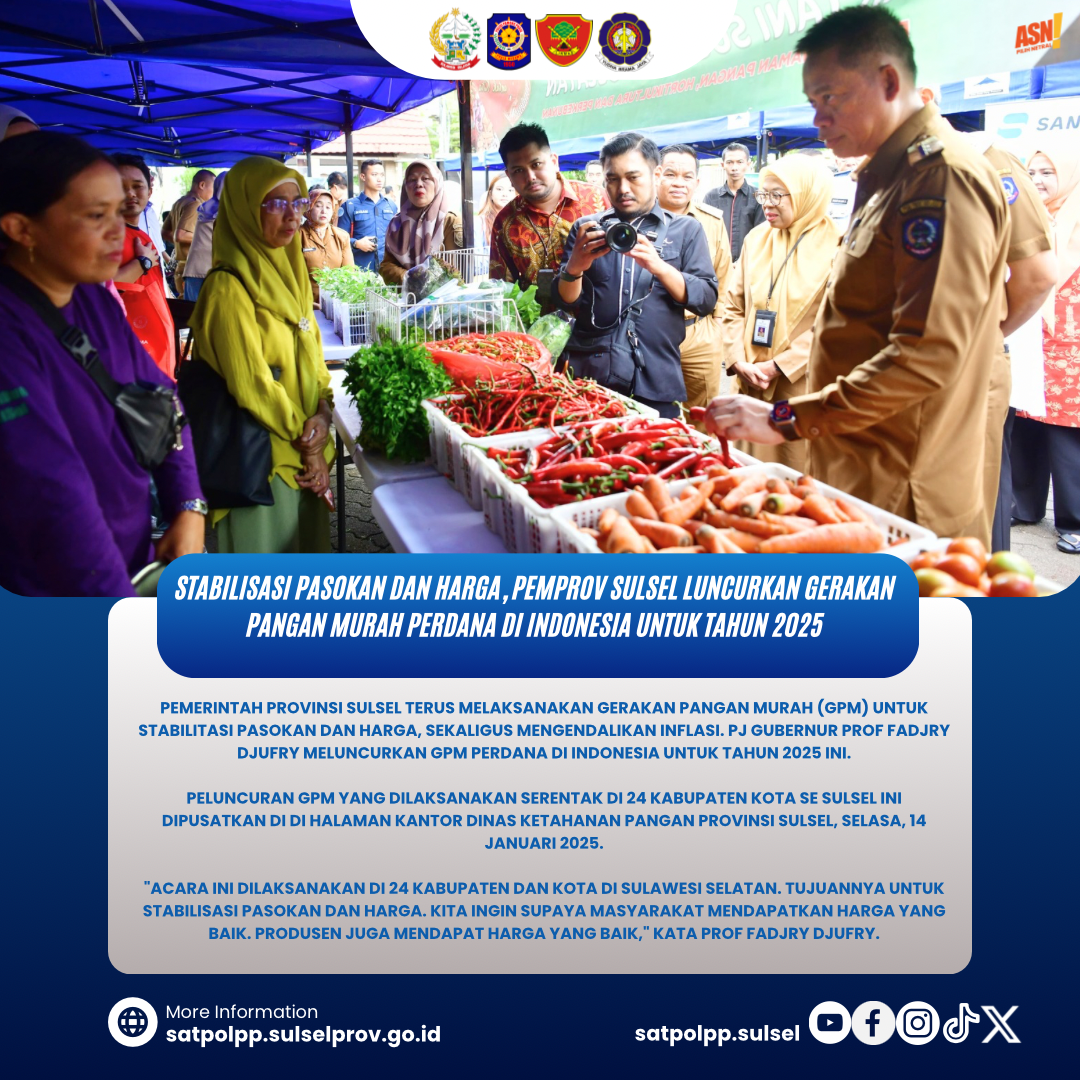 MAKASSAR - Pemerintah Provinsi Sulsel terus melaksanakan Gerakan Pangan Murah (GPM) untuk stabilitasi pasokan dan harga, sekaligus mengendalikan inflasi. Pj...