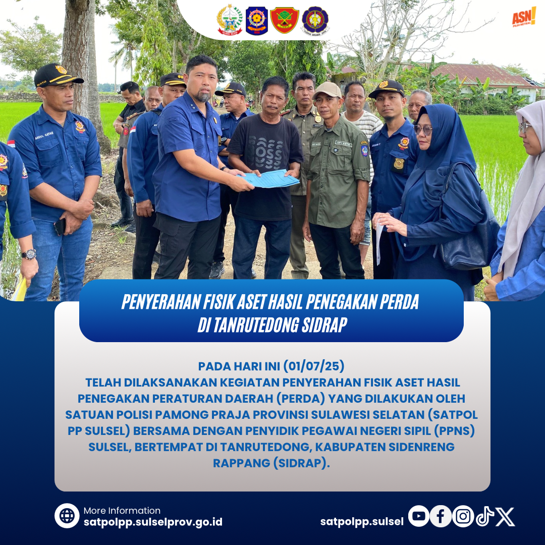 Penyerahan fisik aset hasil penegakan perda di tanrutedong sidrap